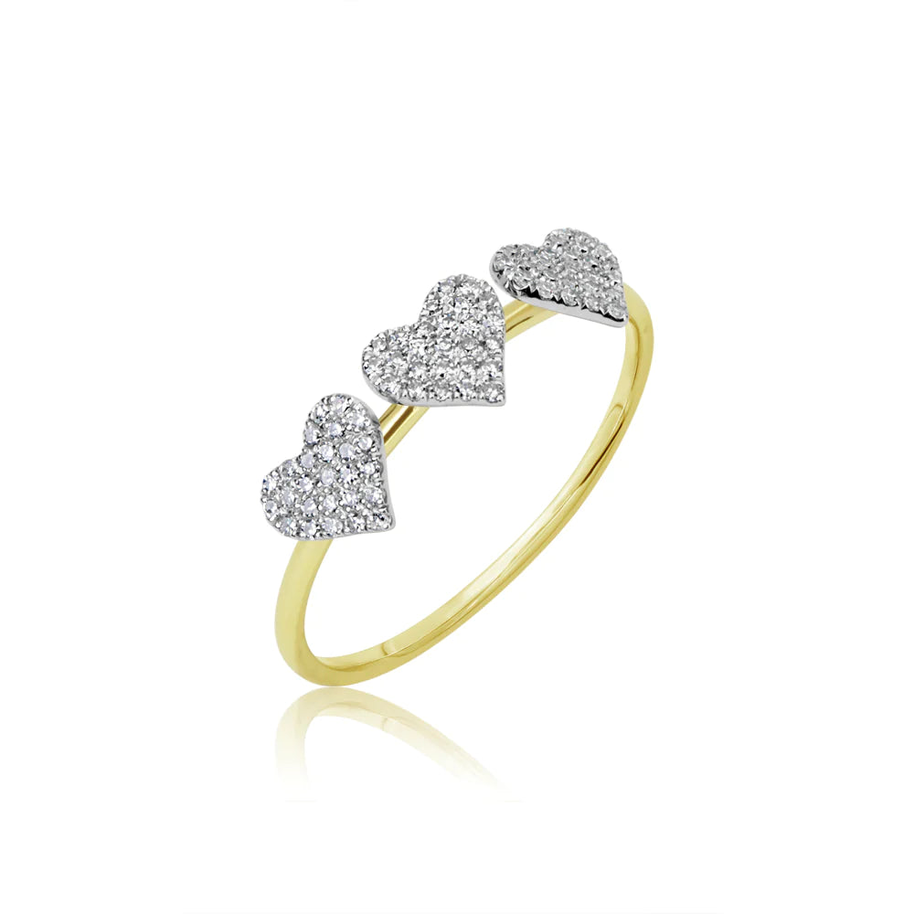 The 3 Heart Stacking Ring is available in 14K yellow gold with a total diamond carat weight of 0.18.