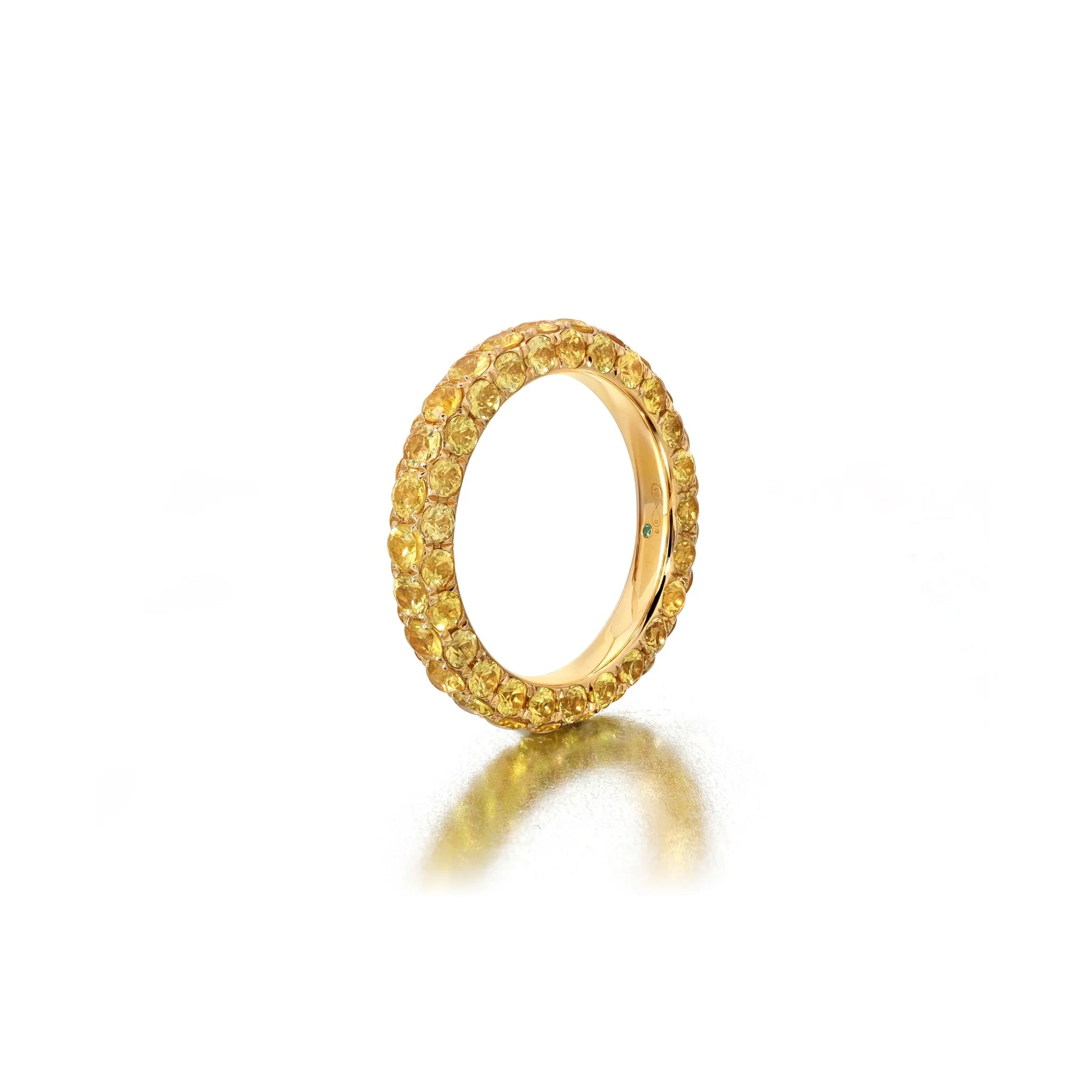 3 Sided Yellow Sapphire and Rhodium Ring is available in 18K yellow gold with a total yellow sapphire carat weight of 5.25.