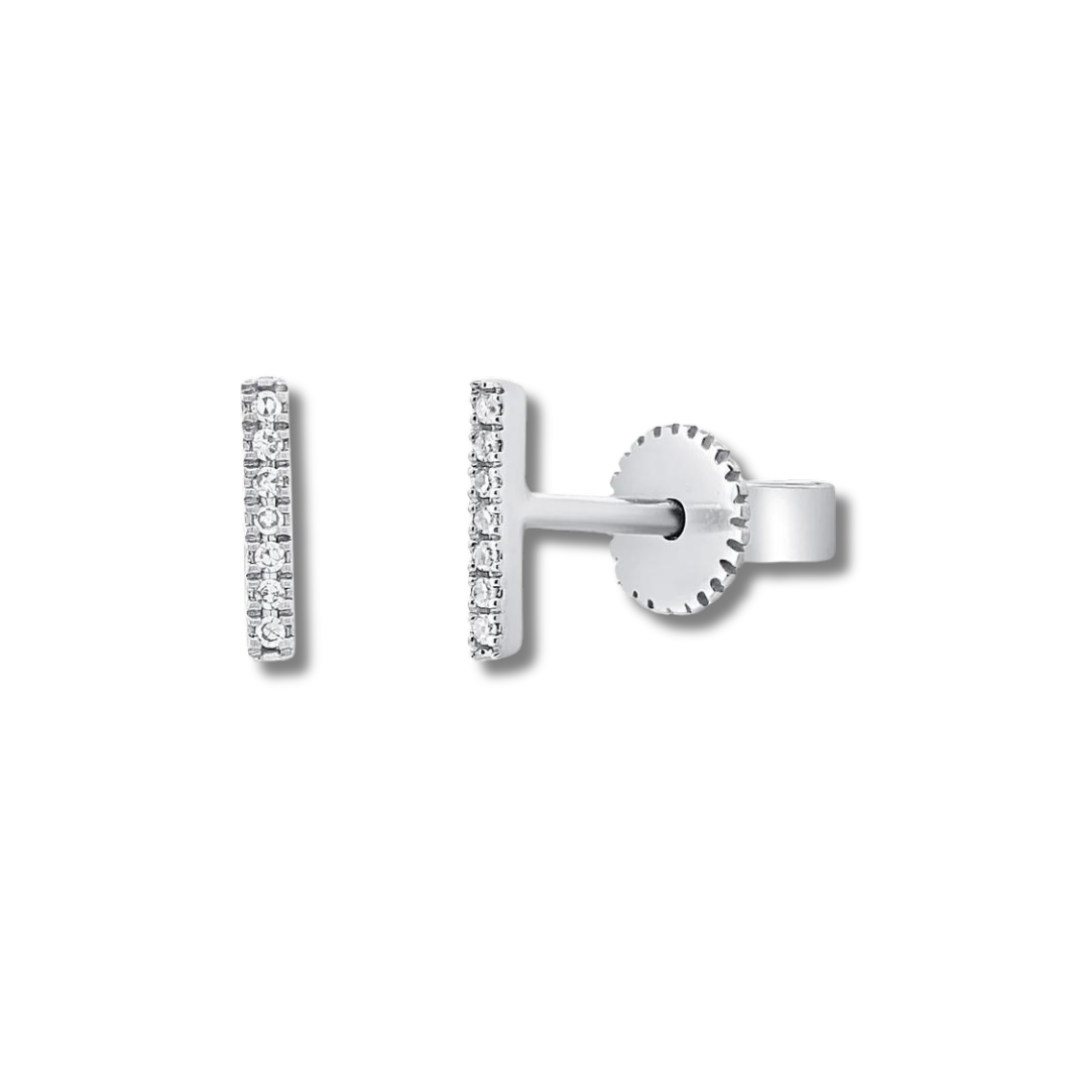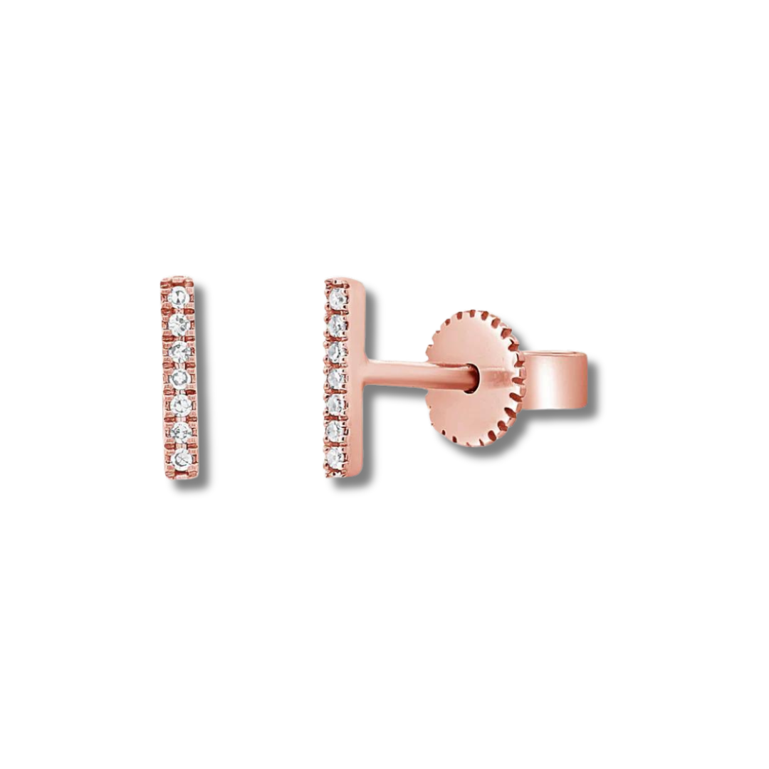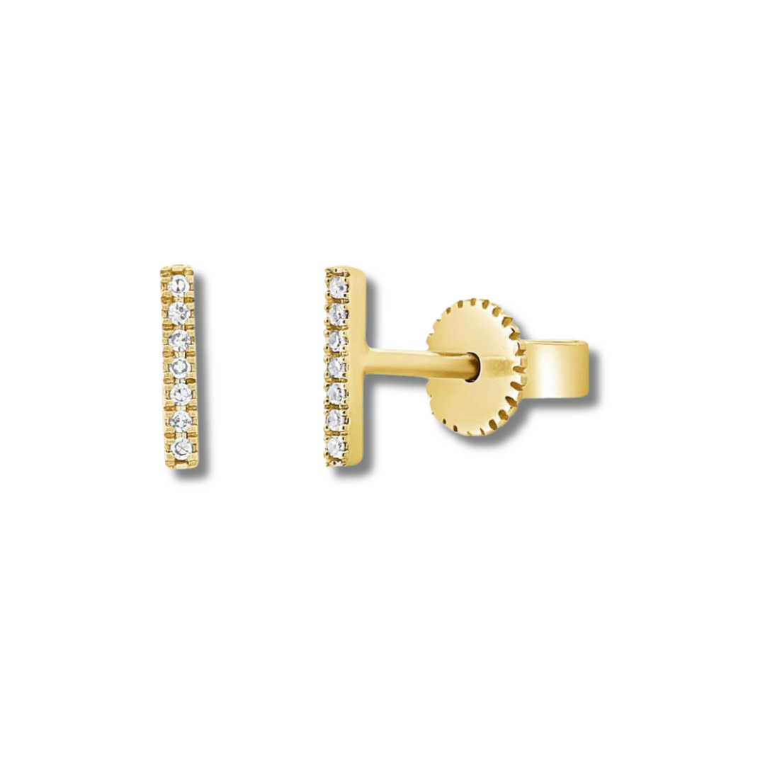This Tiny Bar Earring boasts a 0.03 carat total weight of diamonds and is crafted in 14K yellow, white and rose gold.