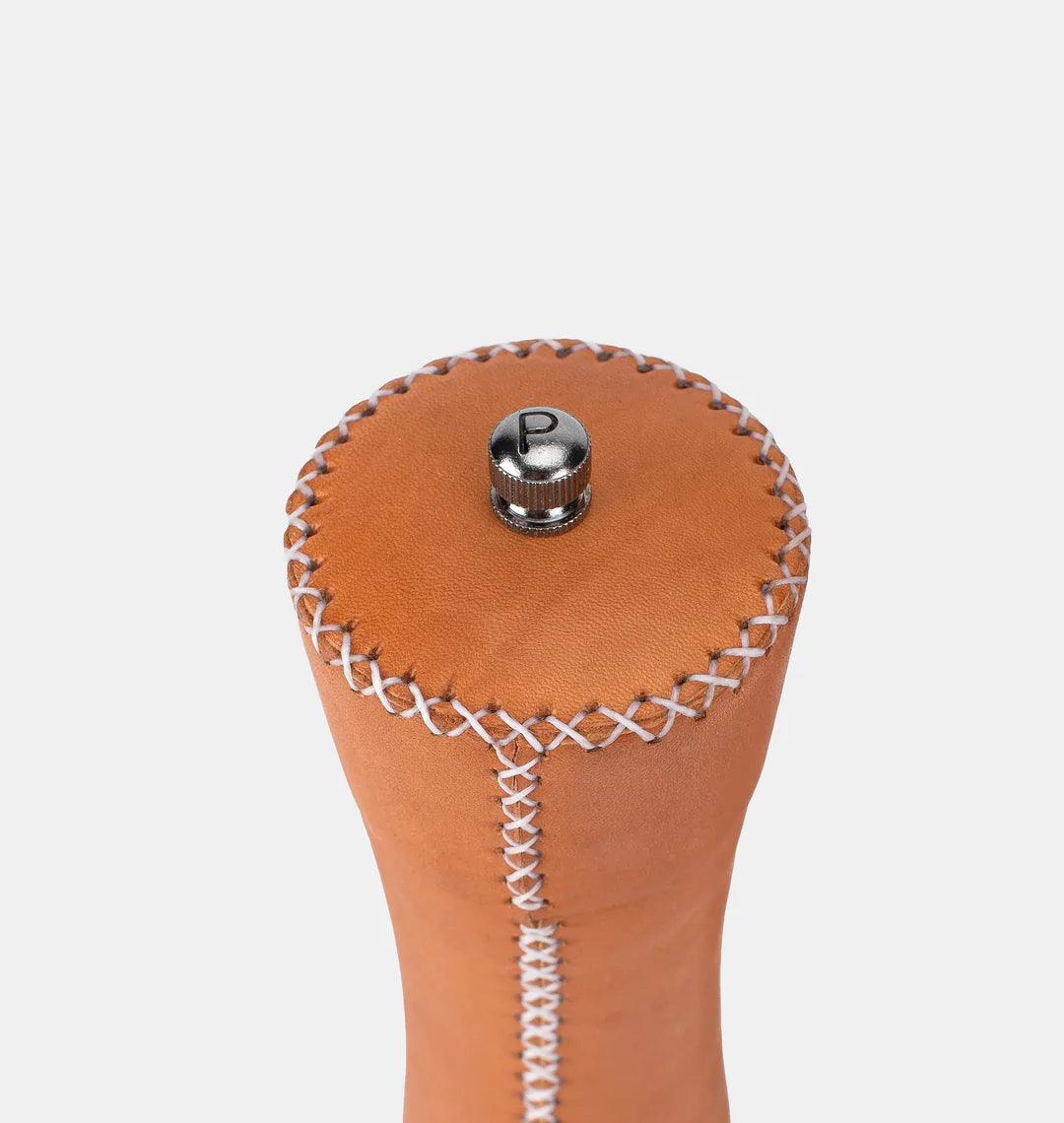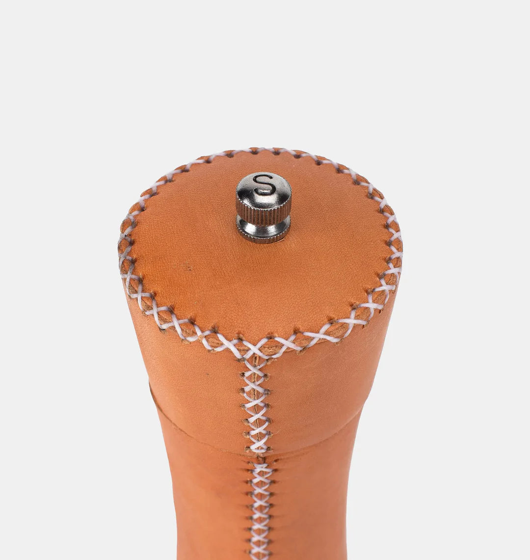 Bati's take on elegant leather goods. These brown leather salt & pepper shakers make for a great addition to any dining table or cooking collection.