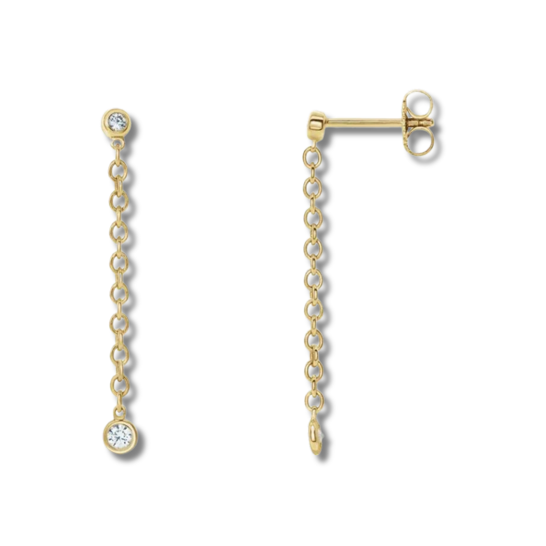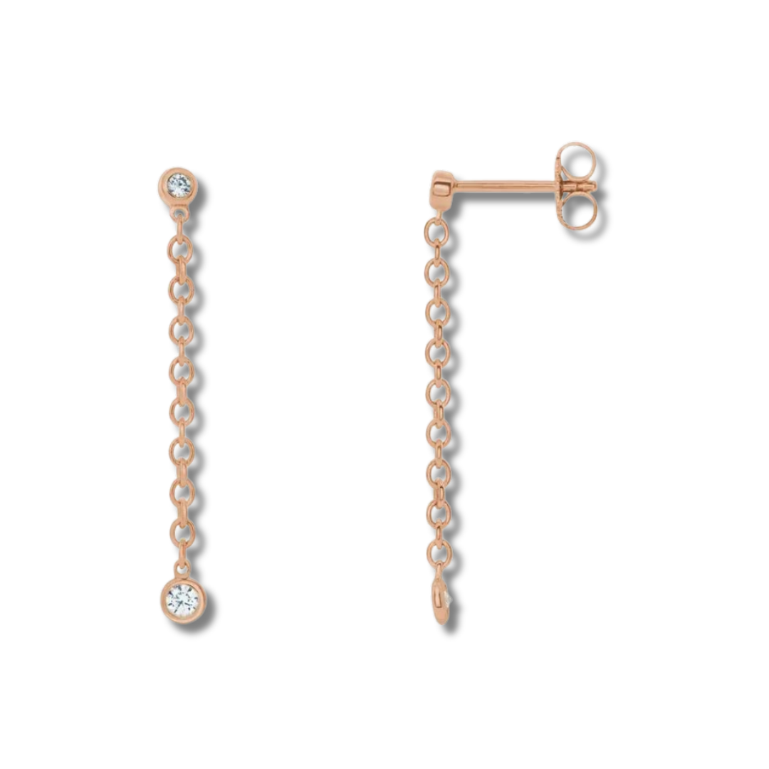 Crafted from 14K gold in white, yellow, and rose hues, the Diamond Drop Chain Earrings feature a total diamond carat weight of 0.20.