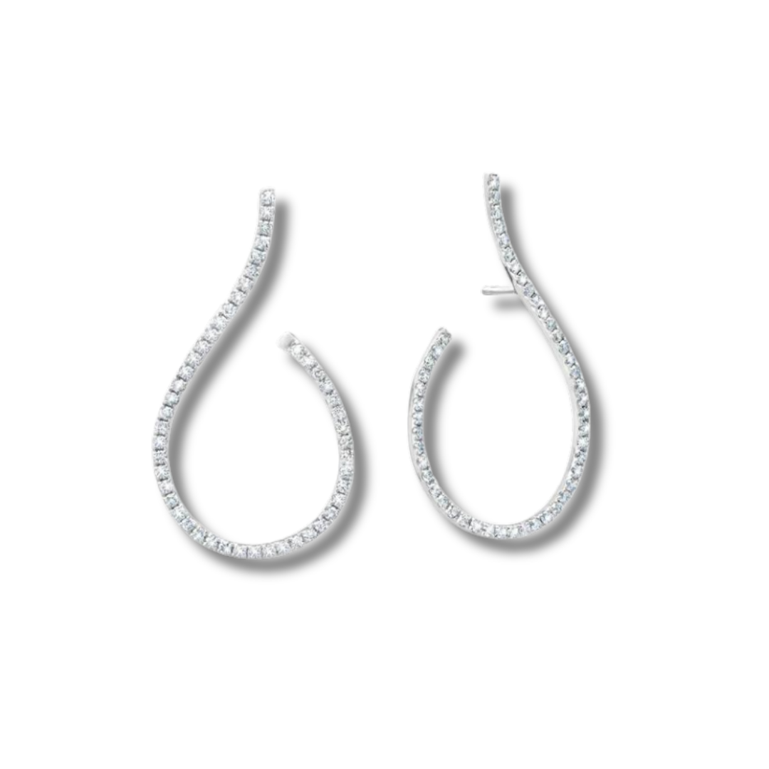 The Diamond Drop Mega Swirl Earrings are available in 18K white, yellow and rose gold and have a total diamond-carat weight of 1.36.