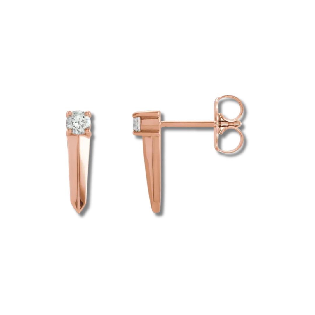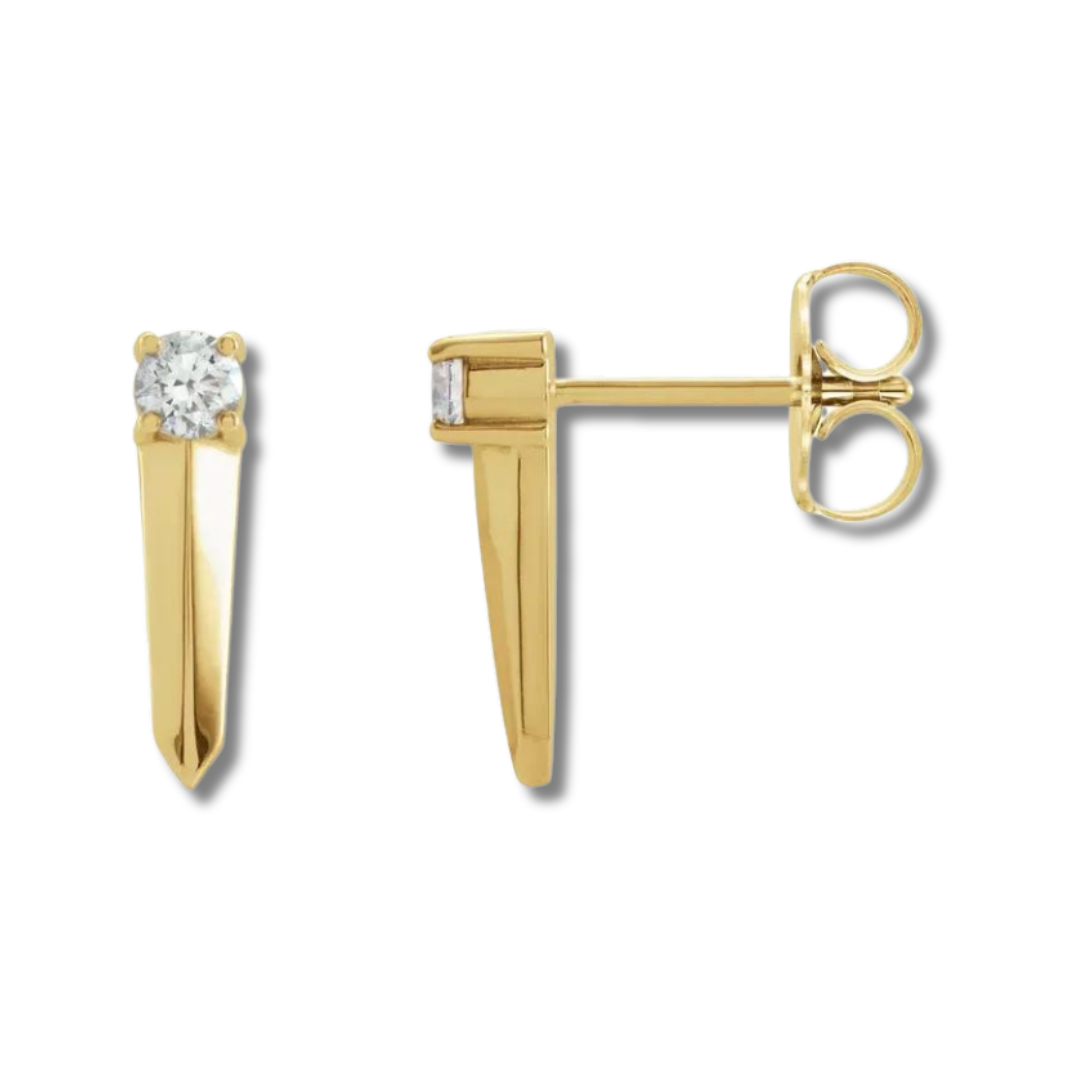 These Diamond Knife Edge Bar Earrings come in 14K white, yellow, and rose gold varieties, with a 0.16 carat total weight of diamonds.