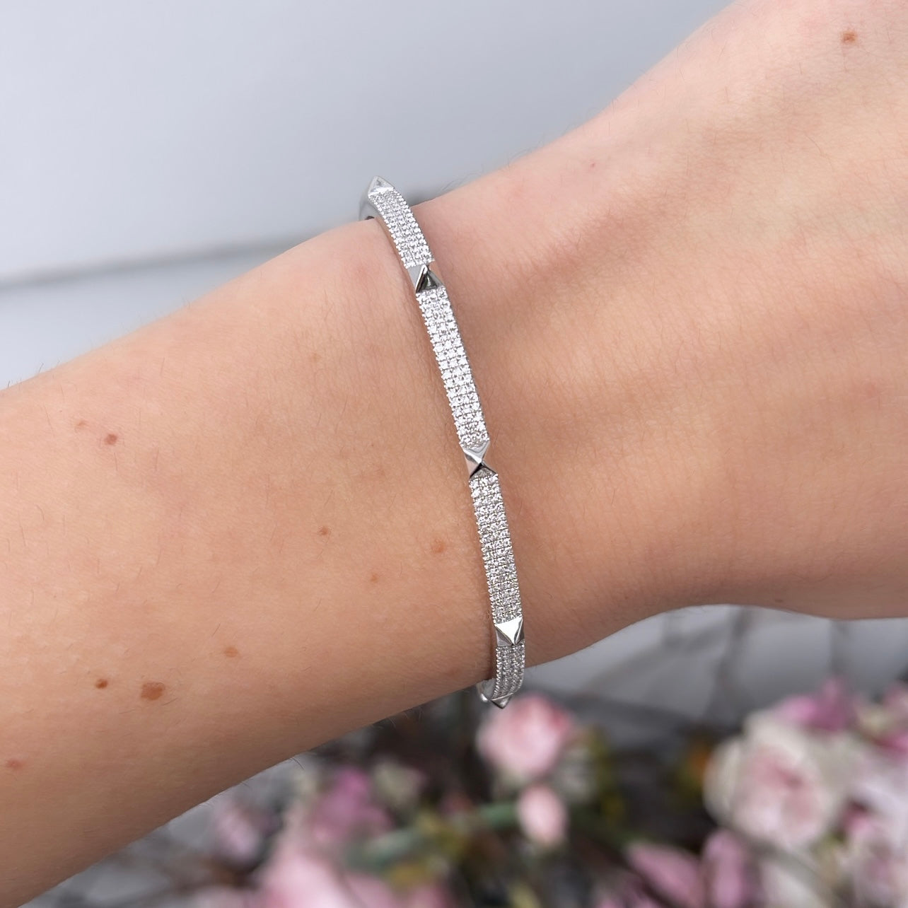 The Edge Diamond Bangle is available in 14K white, yellow and rose gold with a total diamond carat weight of 0.62.