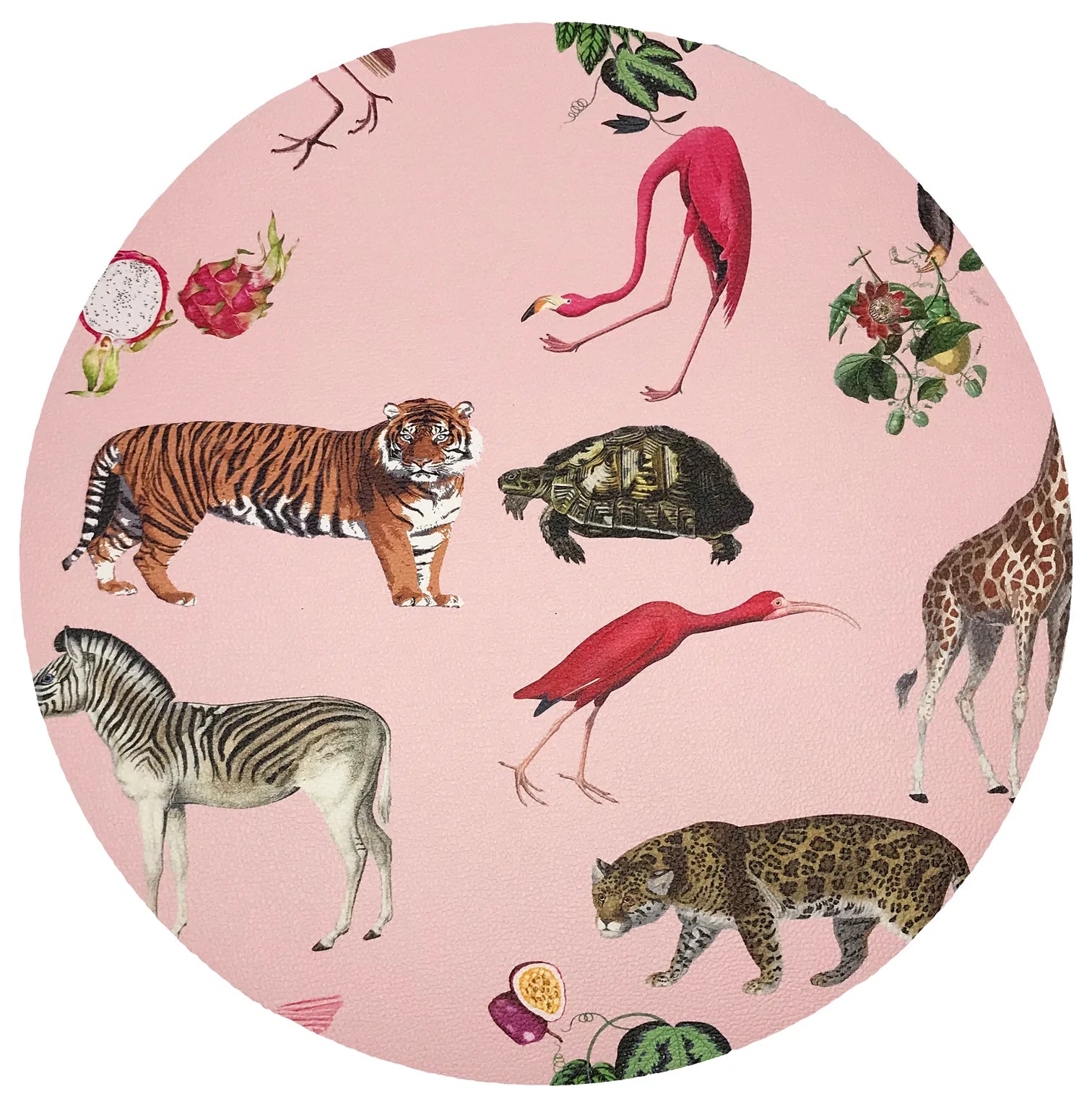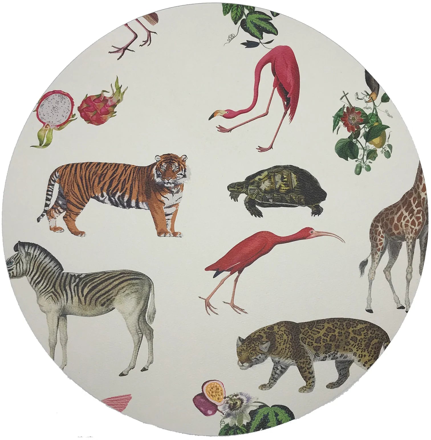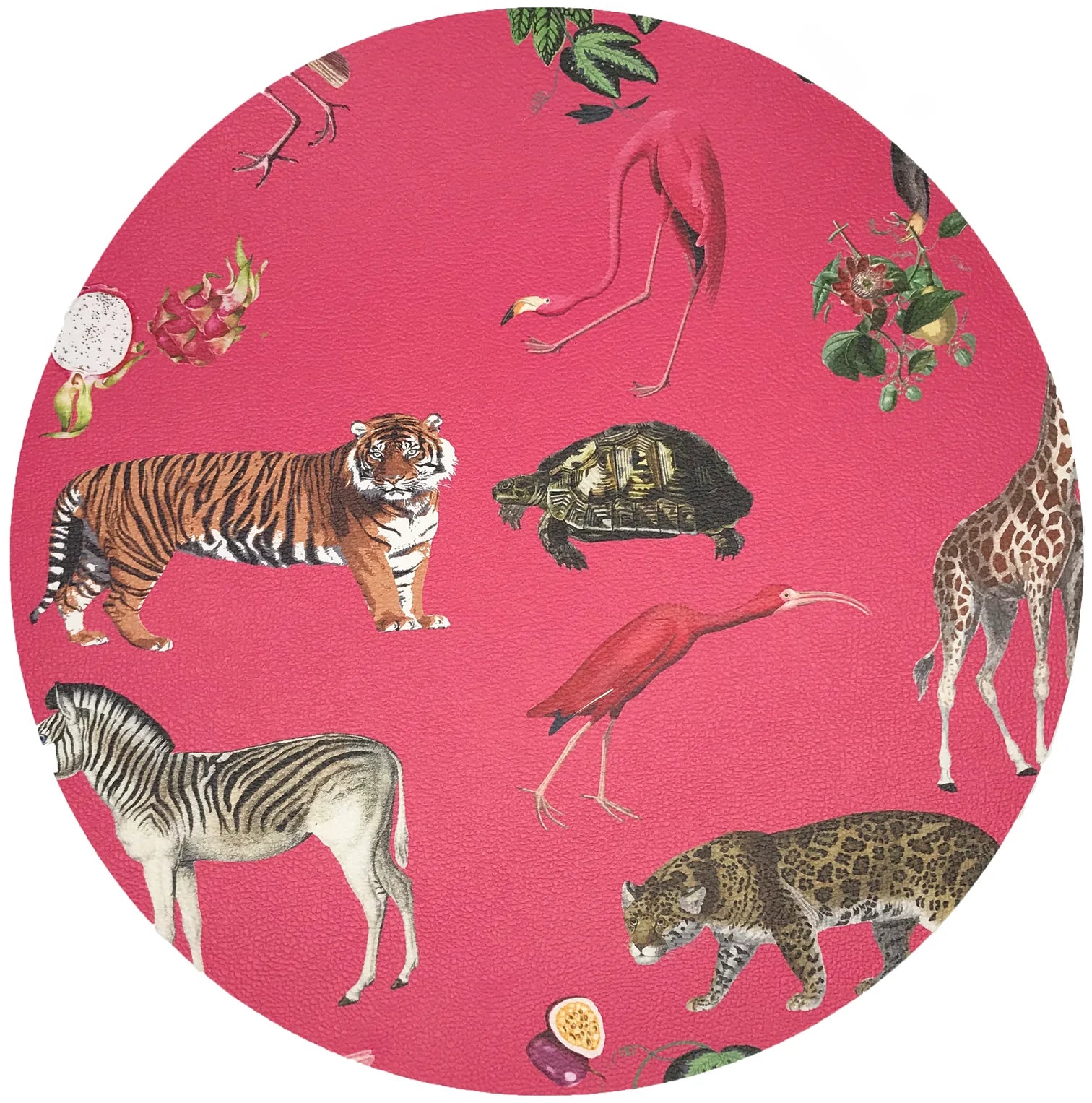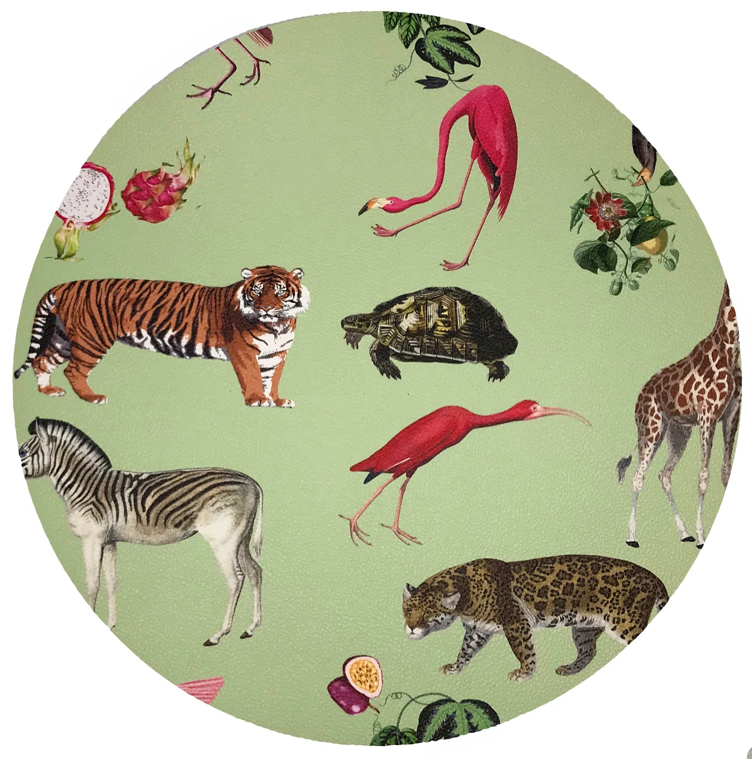 These Exotix pebbled vinyl leather placemats make for stunning entertaining for any occasion. With our signature patterns on the front and off-white on the back, Nicolette Mayer Placemats elevate any table. Arcadia is a poetic place associated with bountiful splendor, harmony with nature; an unspoiled Utopian Garden of Eden.The fantasy Animalia and jungle scenes are pure fun and fantastical.