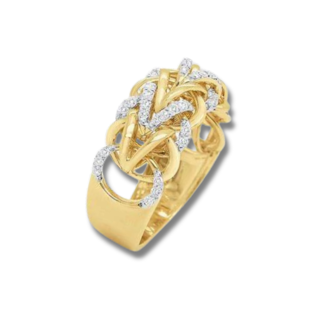 The Flexi Vine Ring is available in 14K yellow gold with a total diamond carat weight of 0.37.