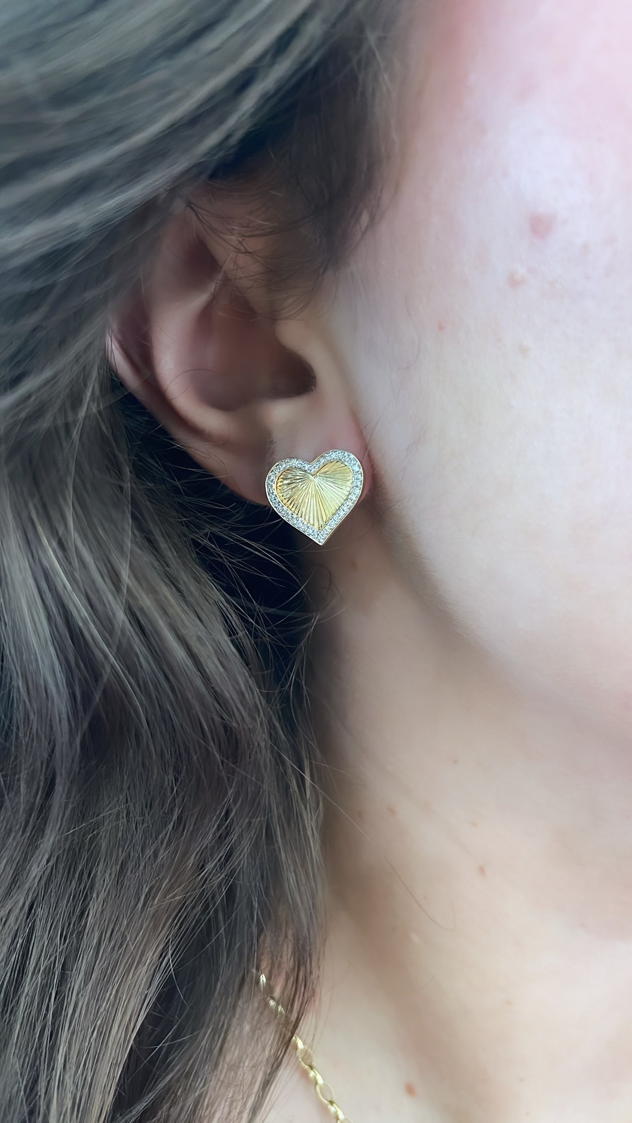The Fluted Diamond Heart Stud is available in 14K yellow gold with a total diamond carat weight of 0.35.