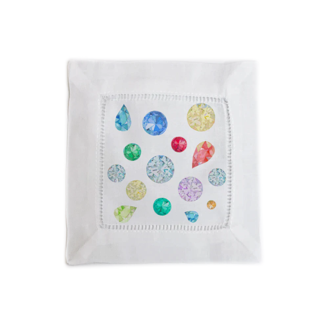 Jewel White Hemstitch Cocktail Napkin (s/4)