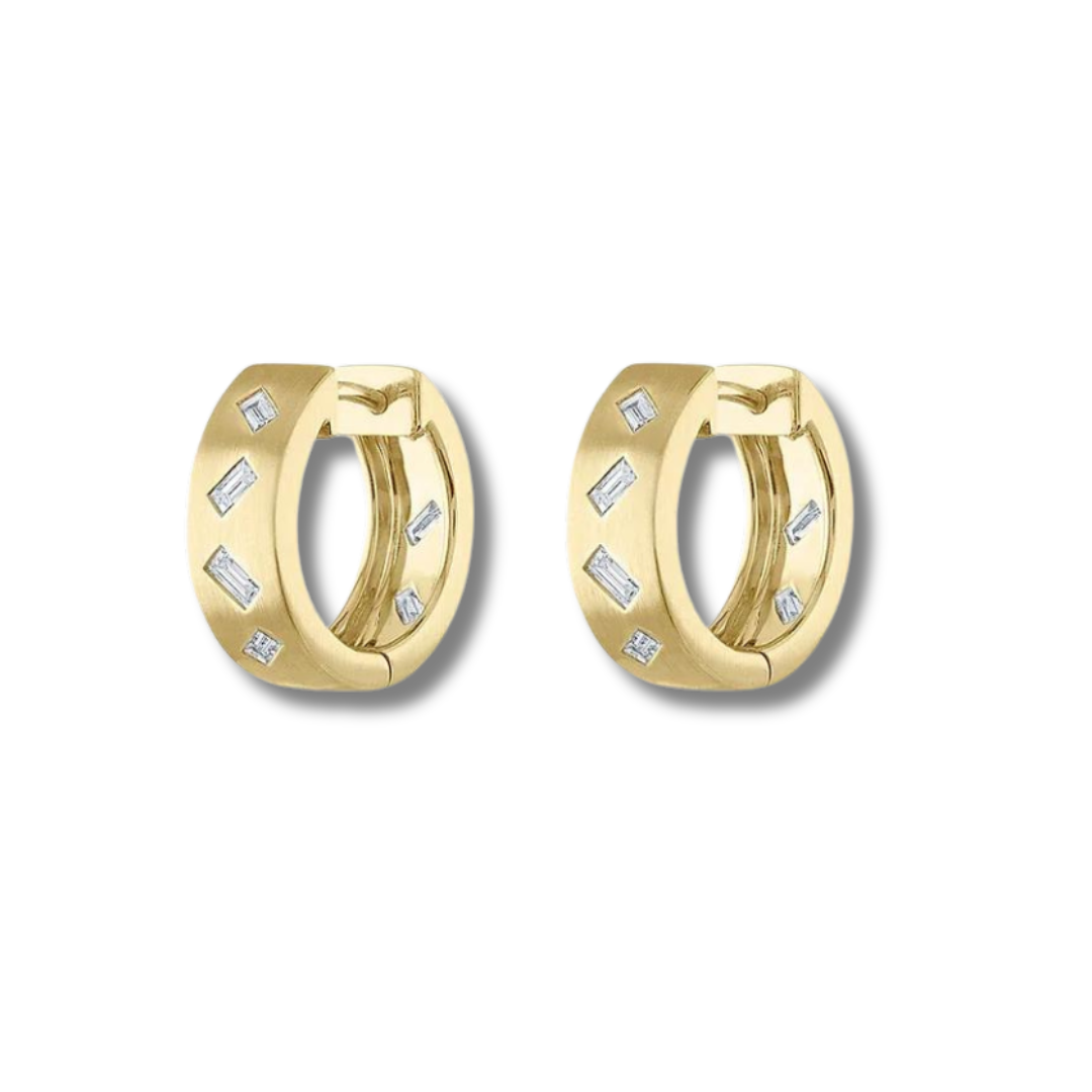 The Jubilation Huggies are available in 14K yellow gold and have a total diamond carat weight of 0.45.