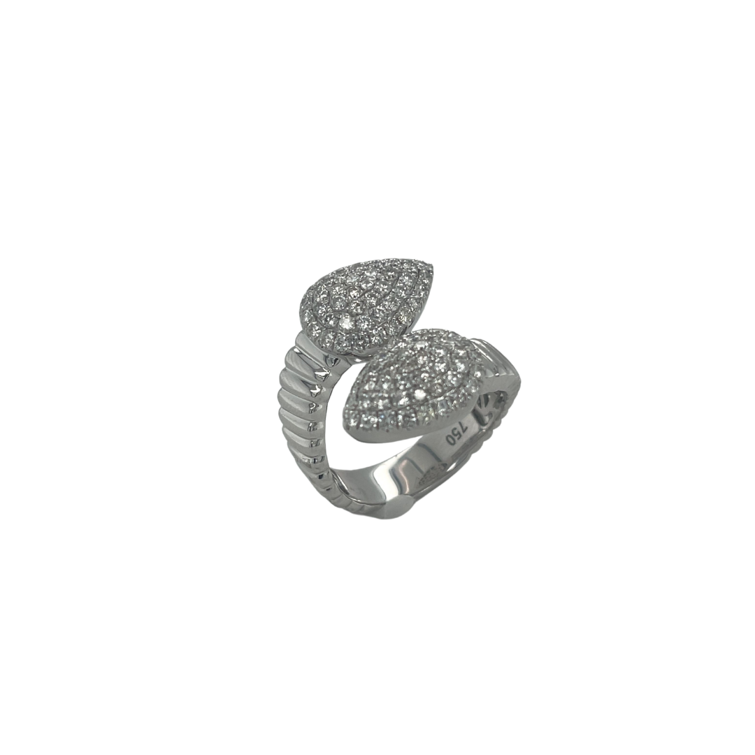 The Leaf Bypass Ring is available in 18K white and yellow gold with a total diamond carat weight of 1.10.