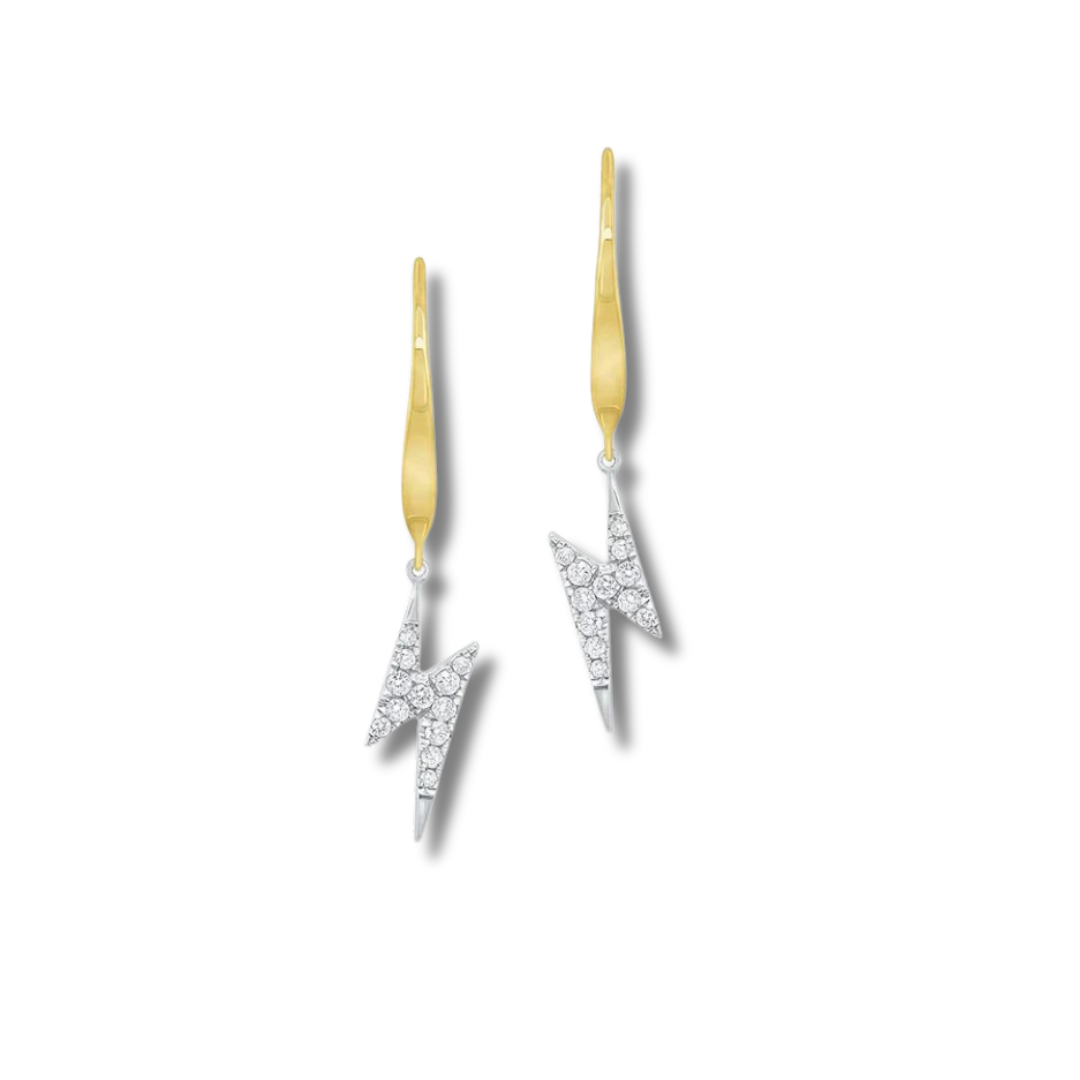 The Lightning Bolt Drop Earrings are available in 14K yellow gold with a total diamond carat weight of 0.18.