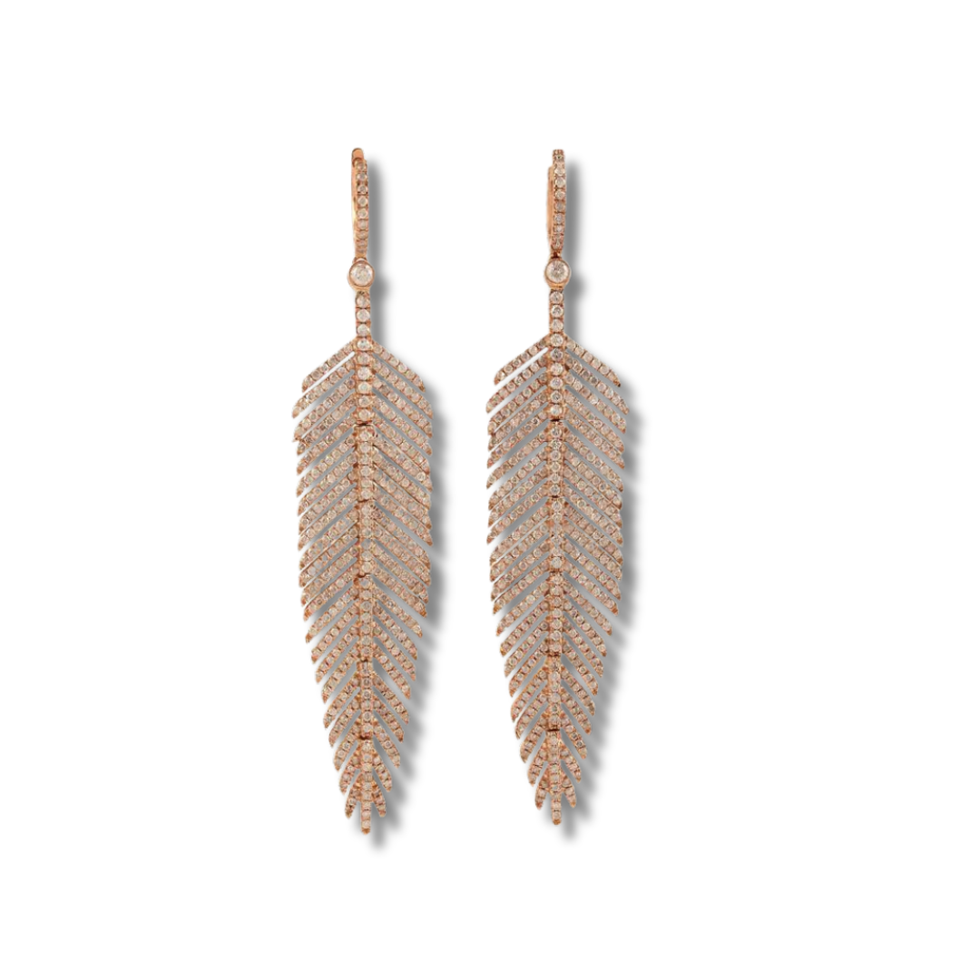 The Pluma Earrings are available in 18K rose gold and have a total diamond carat weight of 2.61.