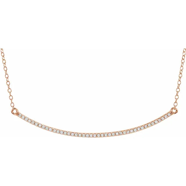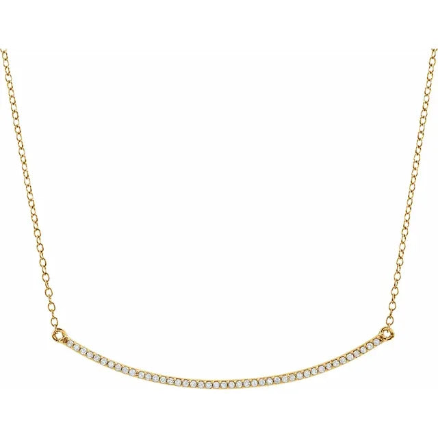 The Scoop Bar Necklace is available in 14K yellow, white and rose gold and contains a total diamond carat weight of 0.16.