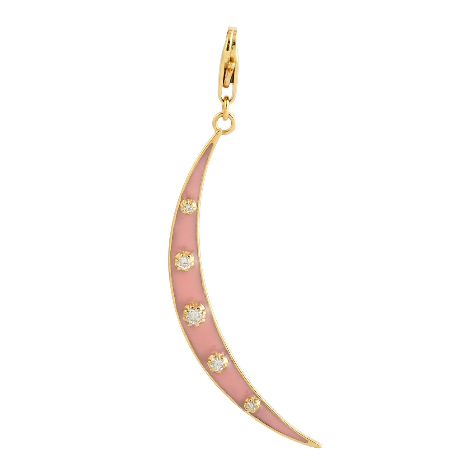The Small Moon Pink Charm is available in 18K yellow gold with a total diamond carat weight of 0.19 and pink enamel.
