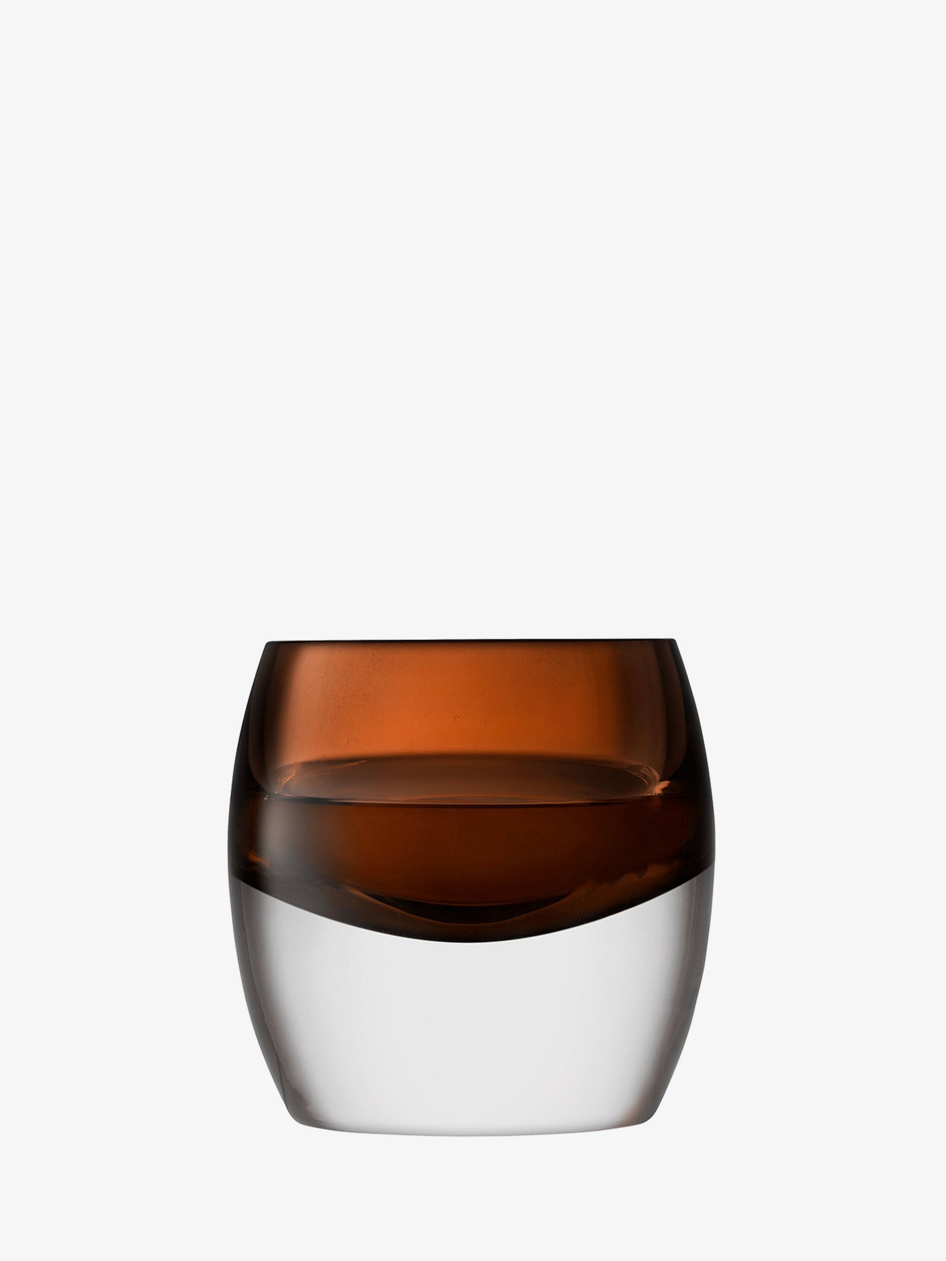 Whiskey tumblers, mouth-blown by master glass blowers from clear and brown glass layers.