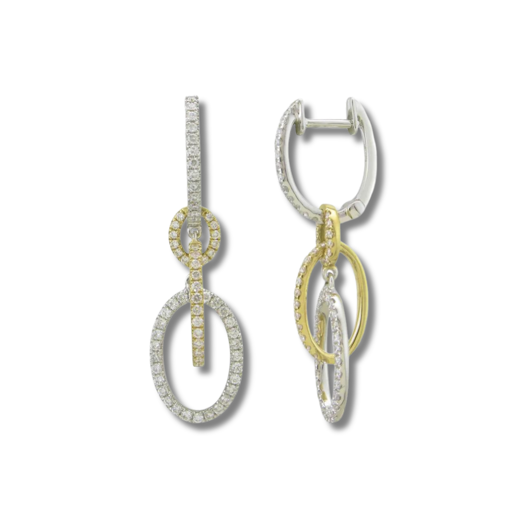 The Yellow Gold Connecting Chain Link Earring is a two-toned set comprised of 18K yellow and white gold with a total diamond weight of 0.67.